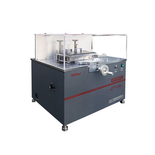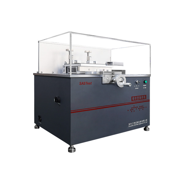 三、 设备说明:哑铃型制样机适用于制取各种非金属管材或板材的哑铃型拉伸试样及维卡热变形试样。本机采用仿形加工原理,并结合机械传动原理将螺纹旋转运动转变成直线运动,具有操作简单、快速、方便且制得试样标准、尺寸稳定等特点。试样与刀具的相对位置可根据实际情况调节,试样的形状由相应的靠模板形状控制,工作过程不受操作人员调动的影响,多次重复使用,不需要反复对刀,能得到用户需要的试样样条;减少了工作时间的耗损和提高了操作的通用性、提高了工作效率、降低了加工成本;且在工作台面上安装有吸尘装置,为工作人员提供了良好的工作环境。采用标准铣刀加工,刀具耐用,制得样品边缘平滑,无毛刺。是电子拉力万能试验机及维卡热变形试验机的理想配套产品。